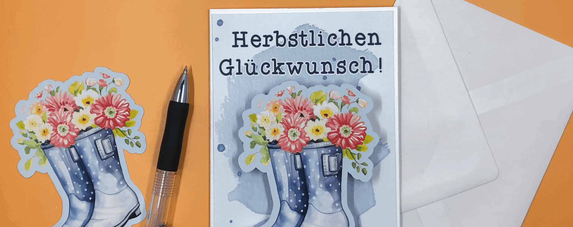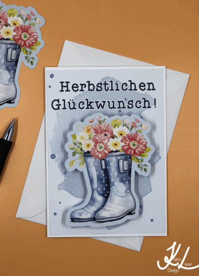 Ich liebe den Herbst. Mit allem, was dazugehört! Wind, Regen, bunte Blätter, es wird langsam kälter, zauberhaft. Für alle Herbstgeburtstagskinder gibt es jetzt diese neue Karte in Katrins Wunderladen. Die Gummistiefel mit den Blumen wackeln beim Öffnen der Post, eine besondere Überraschung für das Geburtstagskind!
