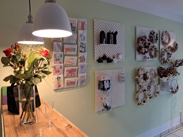 In der Papierwerkstatt werden die Grußkarten, Give-Aways und Dekorationen direkt vor Ort angefertigt und ihr könnt sie dann im Laden erwerben. Je nach Jahreszeit gibt es viele schöne und einzigartige Sachen direkt zum Mitnehmen. Ich freue mich so, jetzt den persönlichen Kontakt zu meinen Kunden pflegen zu können und Aufträge persönlich im Geschäft anzunehmen.